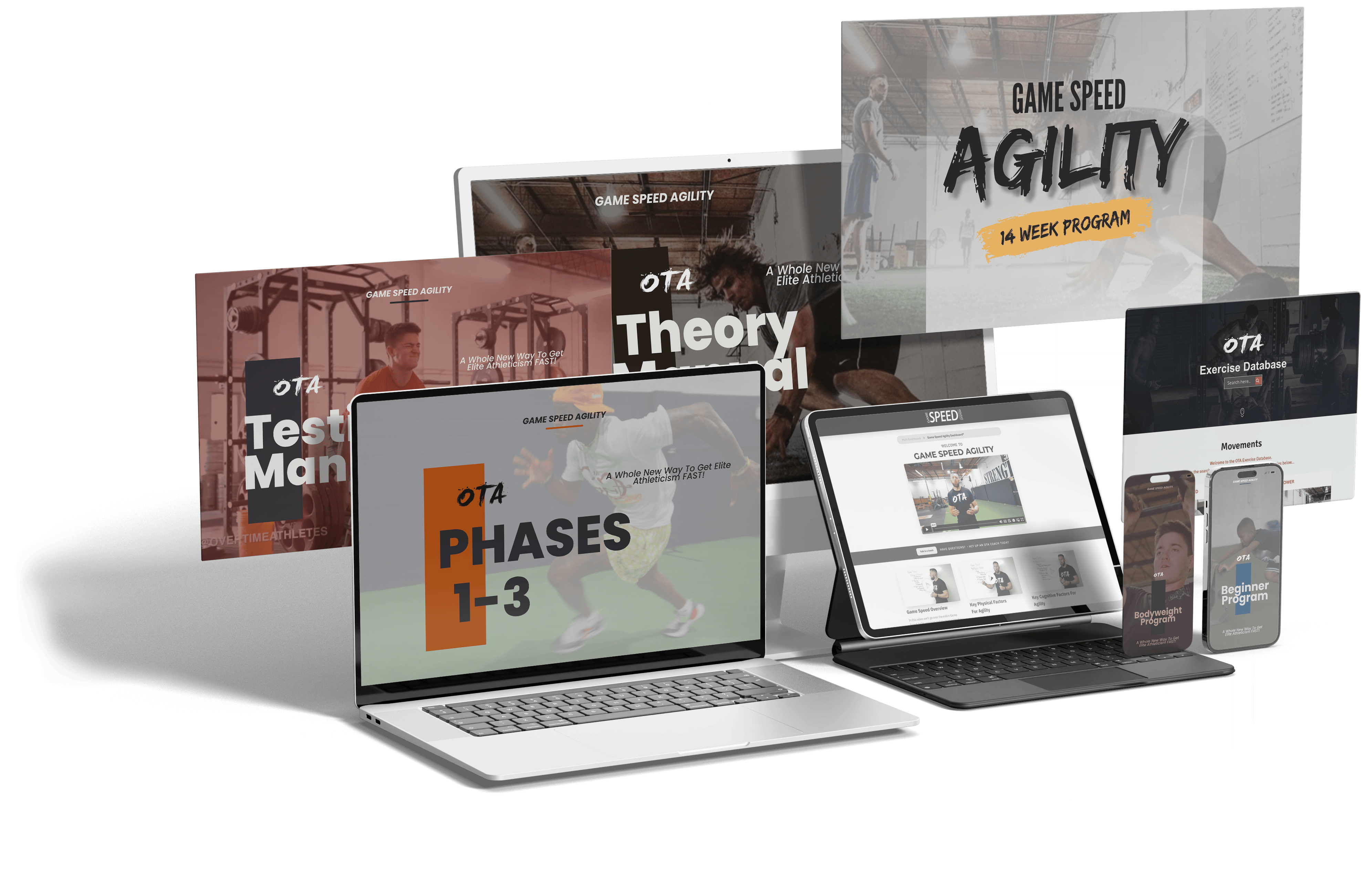 12 WEEKS. 3 PHASES. 60+ ELITE DRILLS: This is more than extra drills. It's 3 FULL MONTHS of advanced change-of-direction work, with pro-level visual and auditory reaction training baked in — so you can process and move faster, in real time.